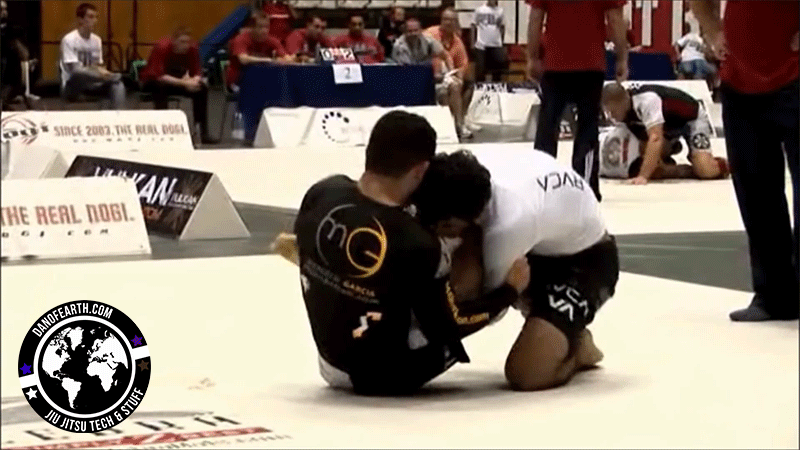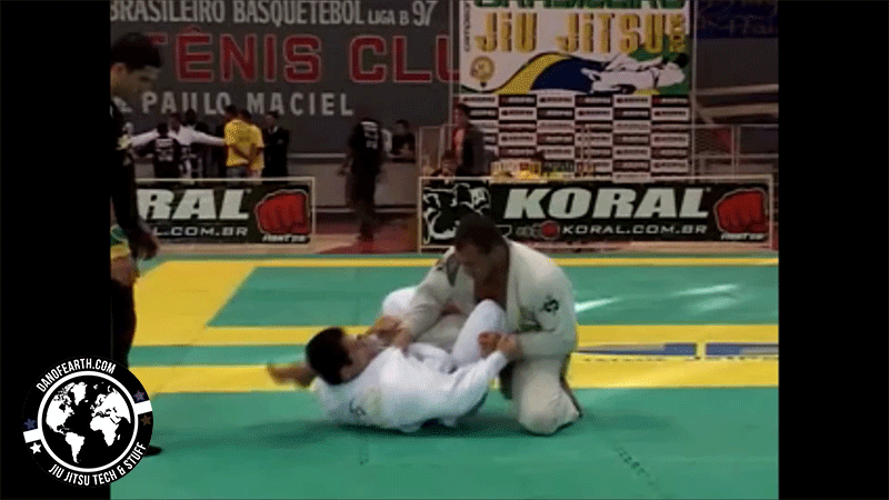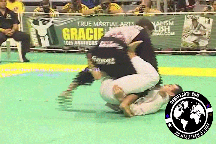 In our second GIF Marcelo pulls off any amazing sweep against Andre Galvao, but only after recognizing that he needed to make the switch to full X-guard from SLX. The video was kind of cruddy, so hopefully I can explain it well. Again, an opponent is stopping the SLX by pulling themselves into Marcelo, squatting low and trying to base out to the opposite side, keeping their leg out of reach. Andre keeps his leg behind him instead of up and to the side like in the GIF with Renzo, so Marcelo uses a different option. When Marcelo rocks himself up by extending his legs and then falls back bringing his legs in he is changing his “structure” or frame against his opponents body. Ryan Hall talks about this concept in his Inverted Guard DVD Series. It’s a great tool for manipulating momentum and changing your opponents position. You’ve provided a support to an opponent and kept the pressure on, and then when you want to remove that support, it unsettles your opponent. It’s an excellent tool from the bottom for sure.