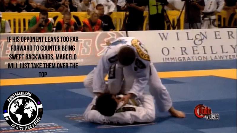 - With the X-guard Marcelo has sweeps available in a 360 direction around you, depending on what you throw at him.